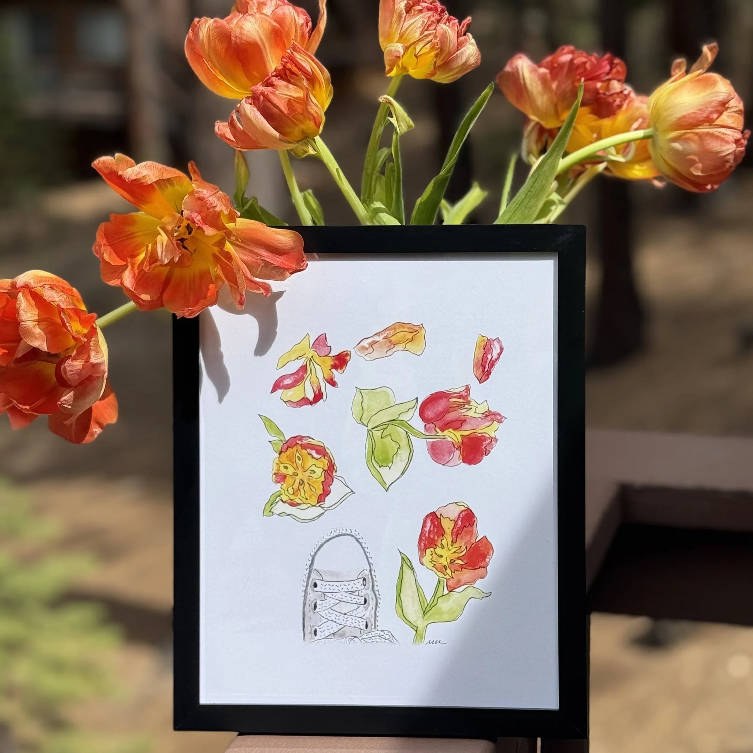 8.5”W x 11”L high quality print of original watercolor, pen & ink.